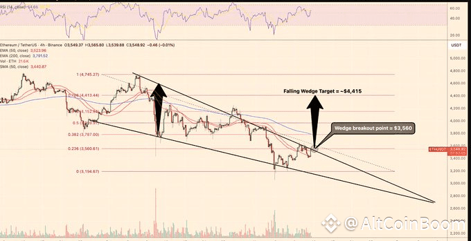 Ethereum’s falling wedge pattern points to a possible 25% rally if price breaks above $3,560.
