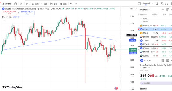 Excluding the total market cap daily chart of the top 10 altcoins, it is consolidating above the support level.