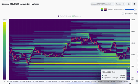 From the recent 1-week liquidation heatmap, 98-99K long liquidity is concentrated, and there may be another retest of this range before the final push.