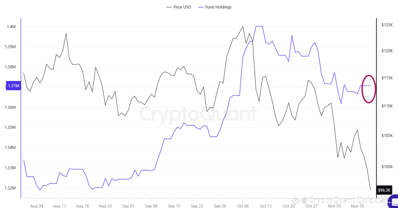 Bitcoin's plunged below $95K, amid aggressive ETF outflows ($870M on Nov 13 alone), but spot ETF holdings remain a bedrock: Fund Holdings metric clocks total BTC at 1.37M—all-time high territory, down just 2% from 1.4M peak but up 5% QoQ from Q3 averages. BlackRock's IBIT (580K BTC) and Fidelity's FBTC (310K BTC) anchor the $127B AUM, showcasing institutional conviction even as retail shakes out.