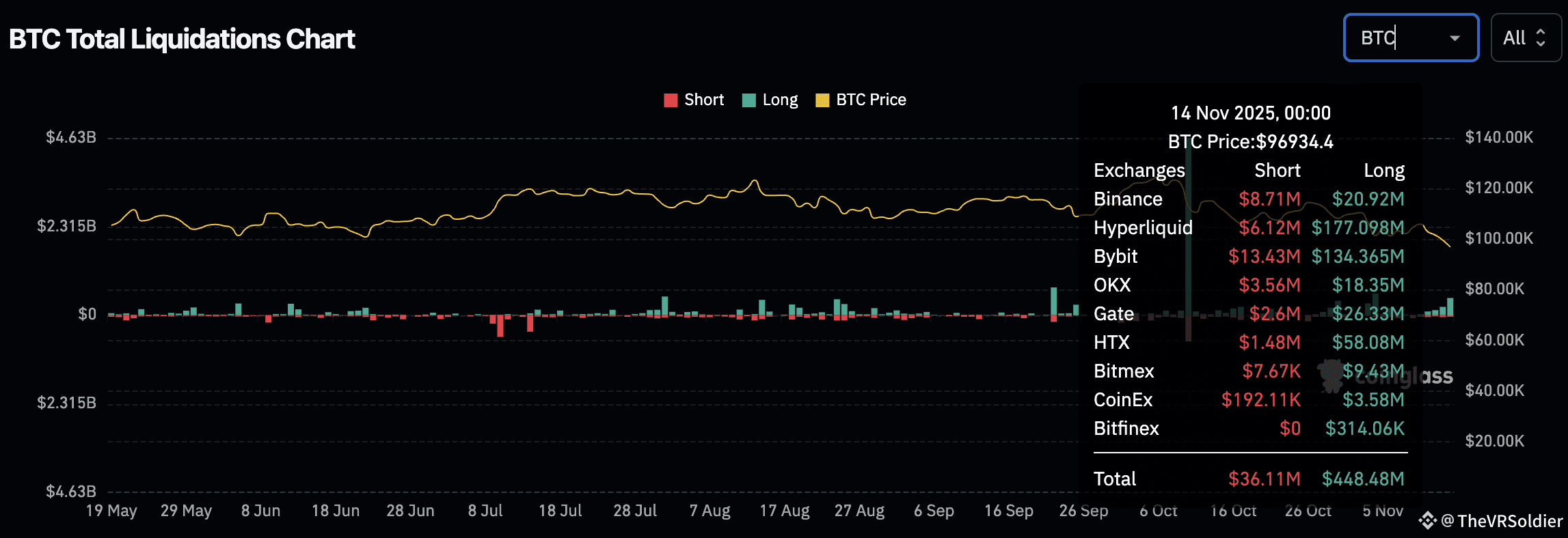 The post Bitcoin Falls Below $100K as $448 Million in Long Positions Are Liquidated first appeared on The VR Soldier.