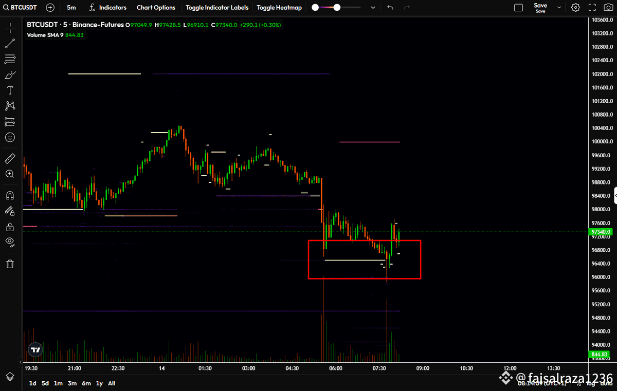 According to CryptoQuant analyst Maartunn, recent order book data reveals a strong layer of support forming on Binance Futures, where two major bid clusters have emerged — one around 800 BTC and another stacking up to 2,000 $BTC BTC. This concentration of buy orders suggests that large traders, often referred to as aggressive dip buyers, are actively accumulating Bitcoin at current levels around $97,000.