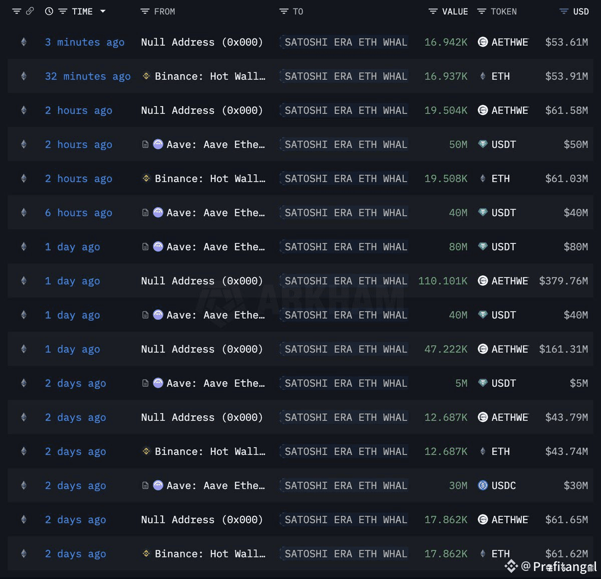 โข The โSatoshi Era ETH Whaleโ received multiple large transfers of ETH and wrapped ETH versions (AETHWE):