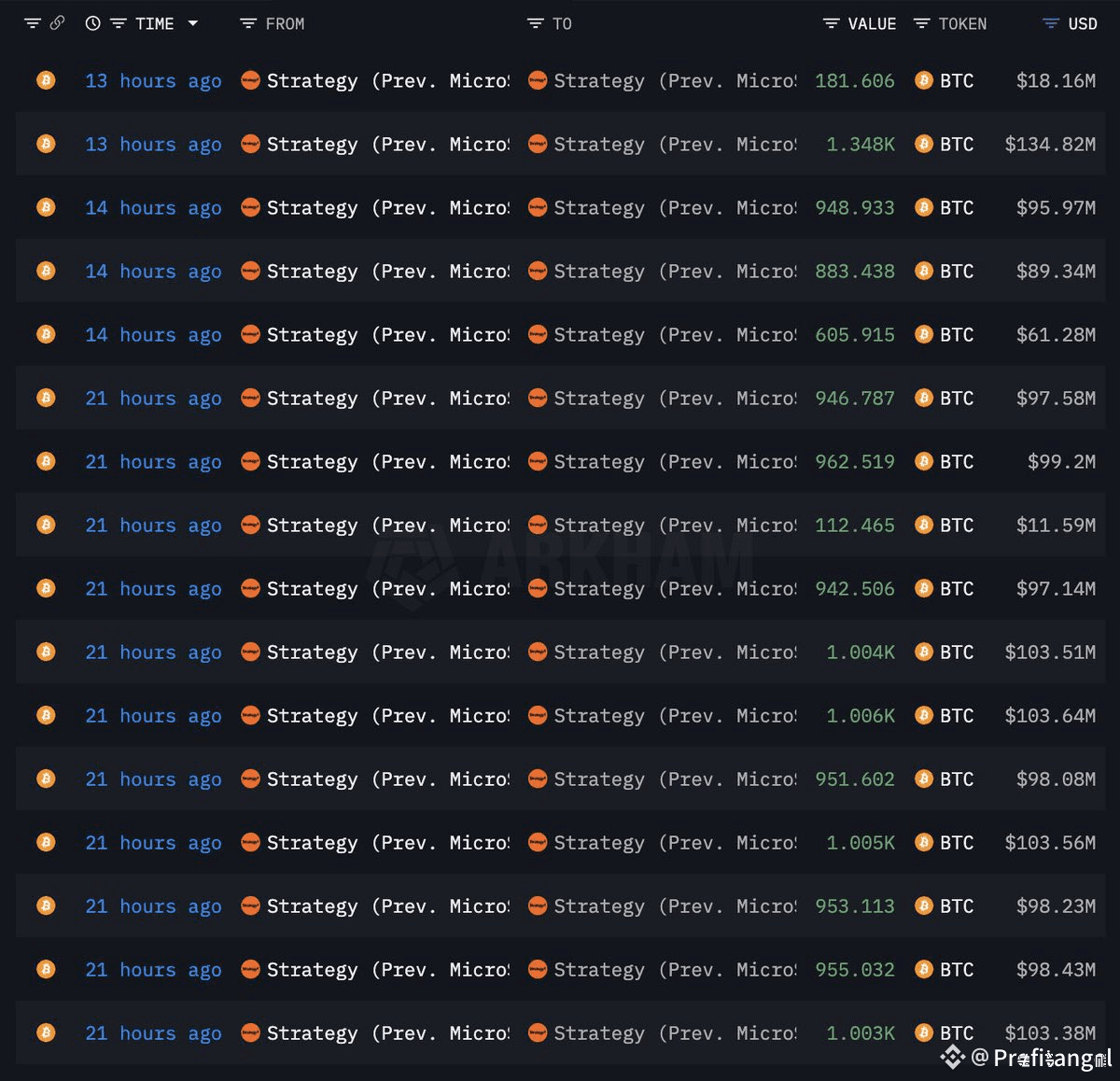โข Multiple Strategy (Prev. MicroStrategy) wallets moved hundreds to thousands of BTC per transaction โ several transfers ranged between 883 BTC to 1,006 BTC, consistently across the last 24 hours.