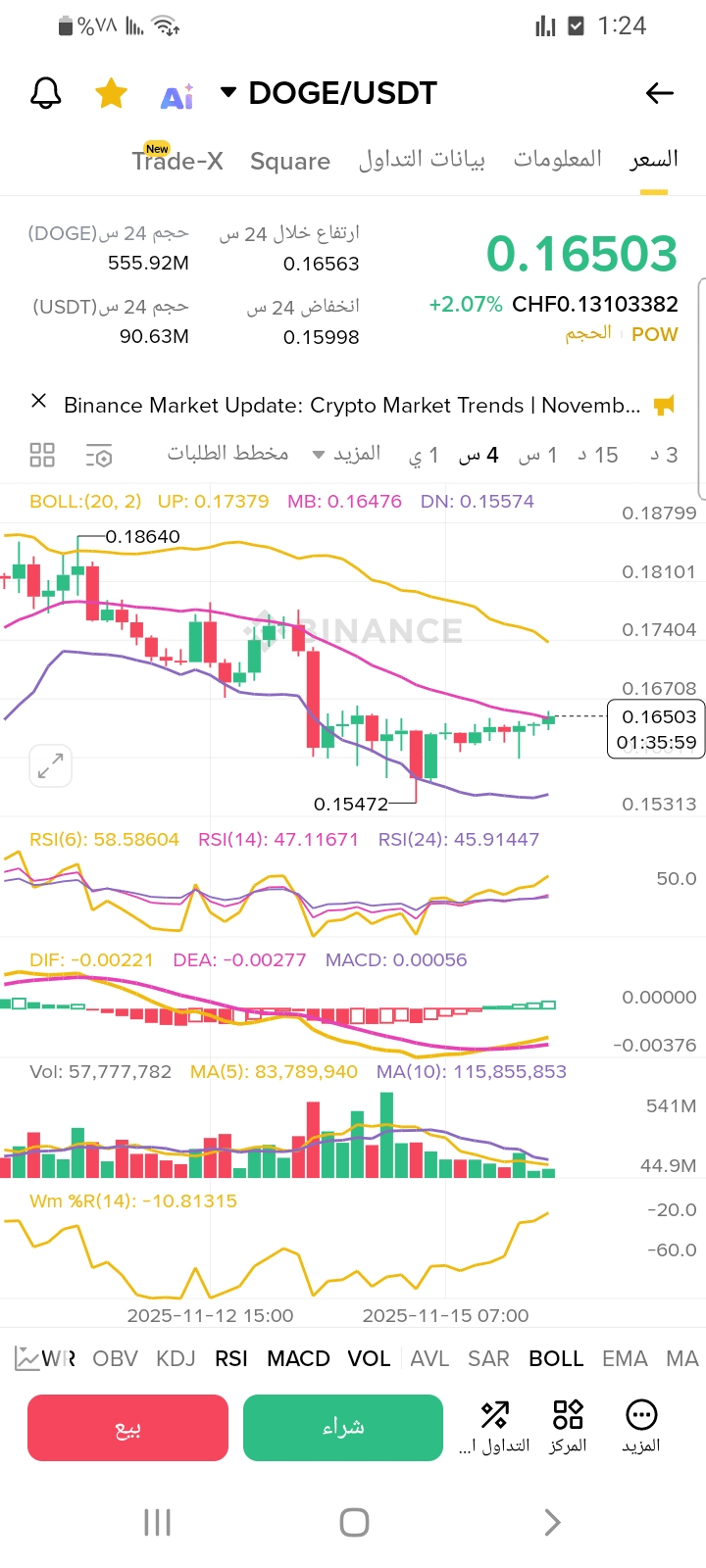 Dogecoin is moving in a rare price pressure phase between support 0.1605$ and resistance 0.1675$...