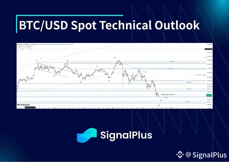 The rally on the US government reopening news was short lived and the market turned, retesting and breaking the $98–100k support zone. This resulted in a move down to test the support at $93–94k which so far has managed to absorb supply and hold. At this point the breakdown from $112.5–115k post the October flash crash looks to be mostly played out and while it is hard to call the exact lows, we consider dips below here to provide good buying opportunities. More broadly the ABC move from $123k → $107k → $126k → current/$93k looks almost completely played out, however we could see market re-testing the $93–94k, looking for a print down towards $90k, given the growing bearish sentiment