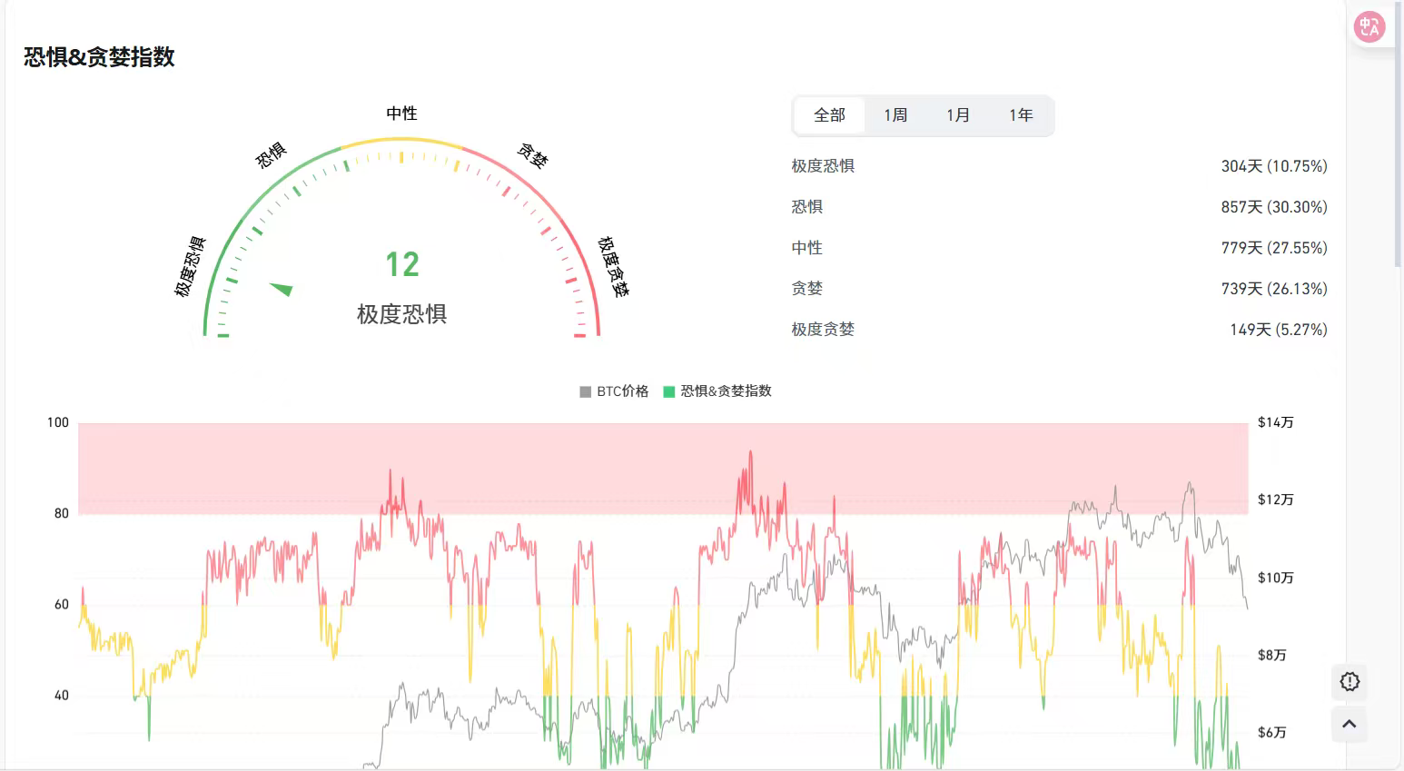 · The Fear and Greed Index has fallen to 12, entering the 'extreme fear' range, marking the lowest level since 2022.