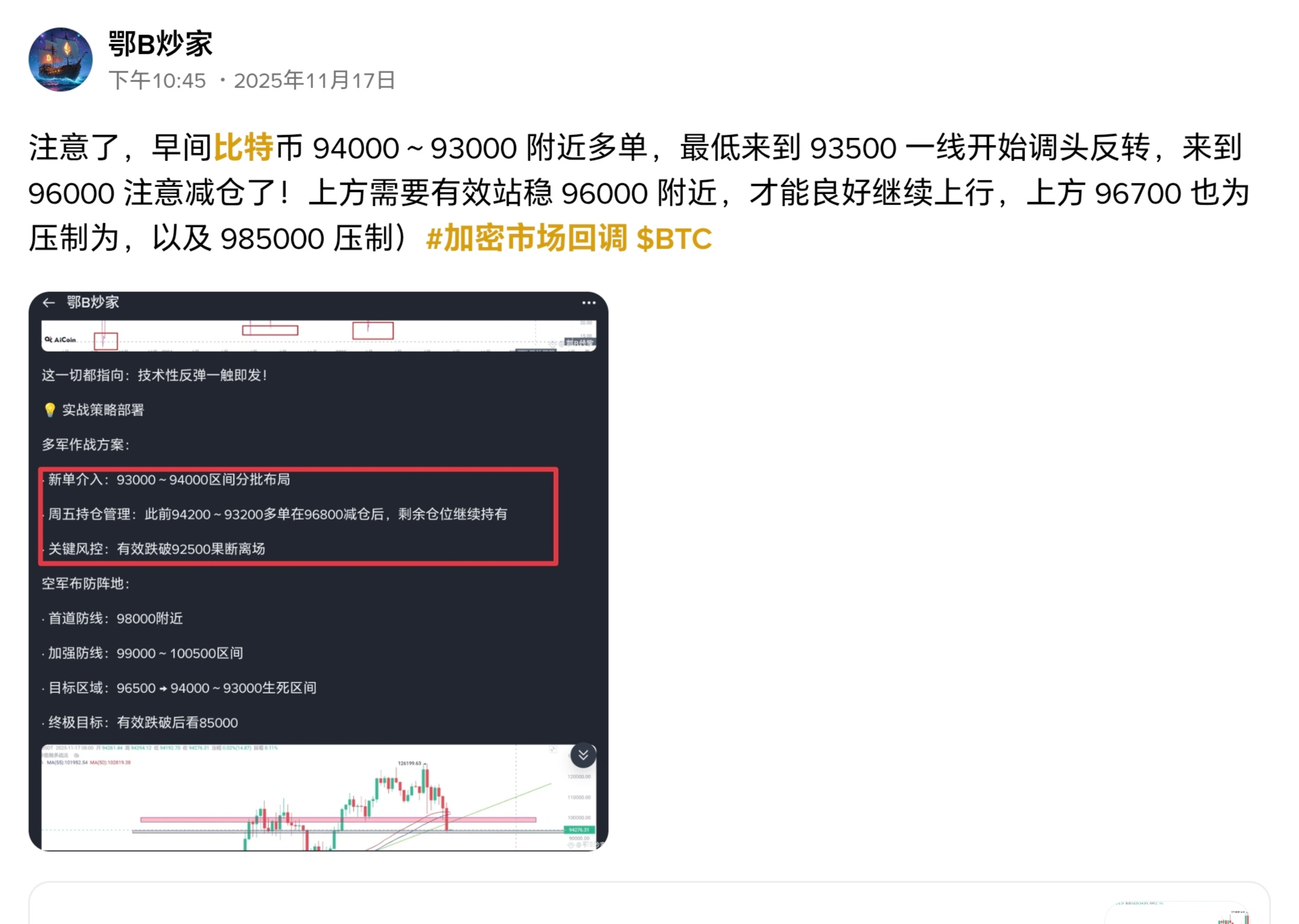 · Stay patient and wait for clear stabilization signals. It is recommended to observe whether the price forms daily long lower shadows and other reversal patterns around 90,000 USD before considering phased entries.