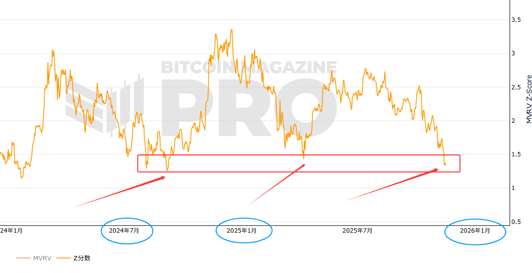 From the above chart, the MVRV ratio (Market Value to Realized Value ratio) shows that the current Bitcoin trend has reached the same level as in August 2024, which is a bit deeper than the pullback in May 2025. If the bull market has not ended, then this stage will be the bottom of the phase, with only 4 months until the next Bitcoin doubling, based on the previous two instances, indicating a peak in March 2026.