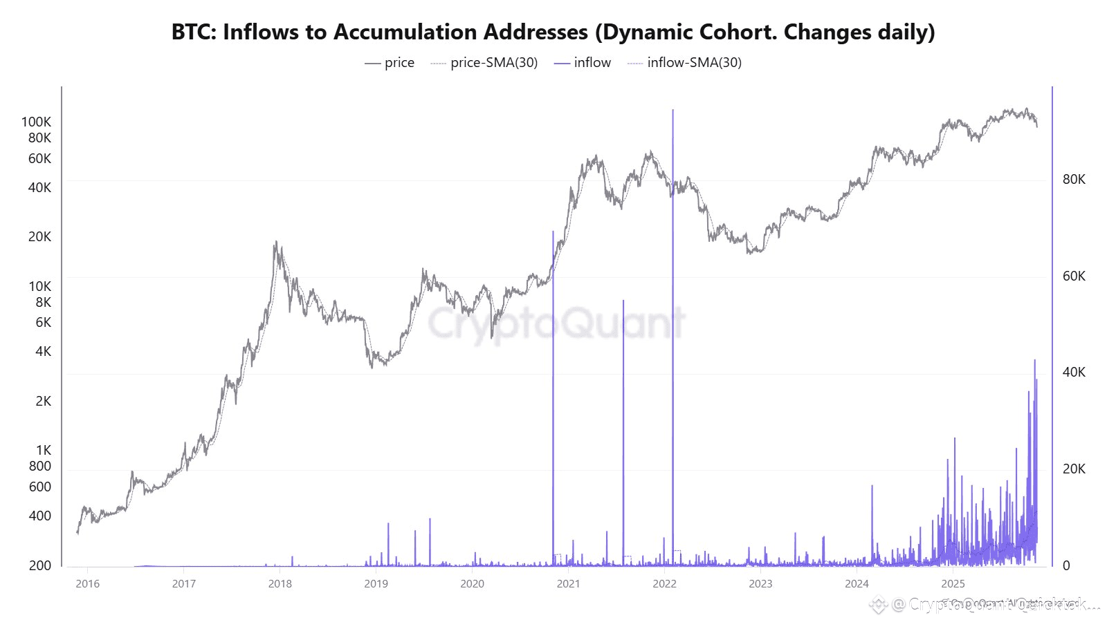 Despite the decline, Bitcoin inflows to accumulation addresses are increasing.