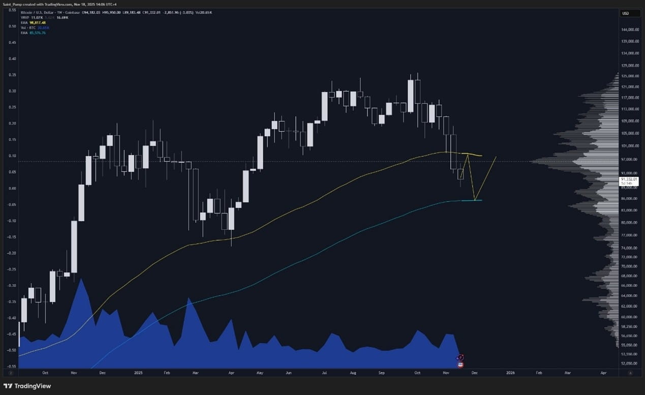 (Dr. Pump believes BTC will rebound to test the weekly EMA60 average, then drop to the EMA99 average for bottoming. Corresponding points are around 97000 and 83000.)