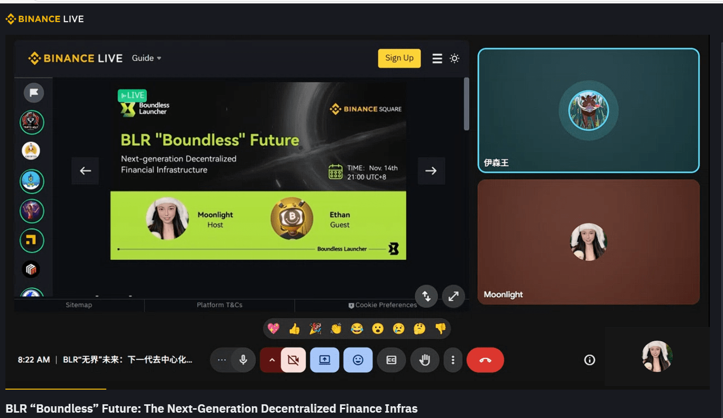 On November 14, 2025, the innovative project Boundless Launcher under the Singapore BSN Foundation will co-host a live AMA event with Binance Square themed 'BLR "Boundless" Future: Next-Generation Decentralized Financial Infrastructure.' This live broadcast will be presented by Mr. Ethan, the Chief Strategy Officer of BLR, providing an in-depth analysis of the project's technical architecture, ecological vision, and token economic model, showcasing a brand new decentralized financial landscape for global investors.