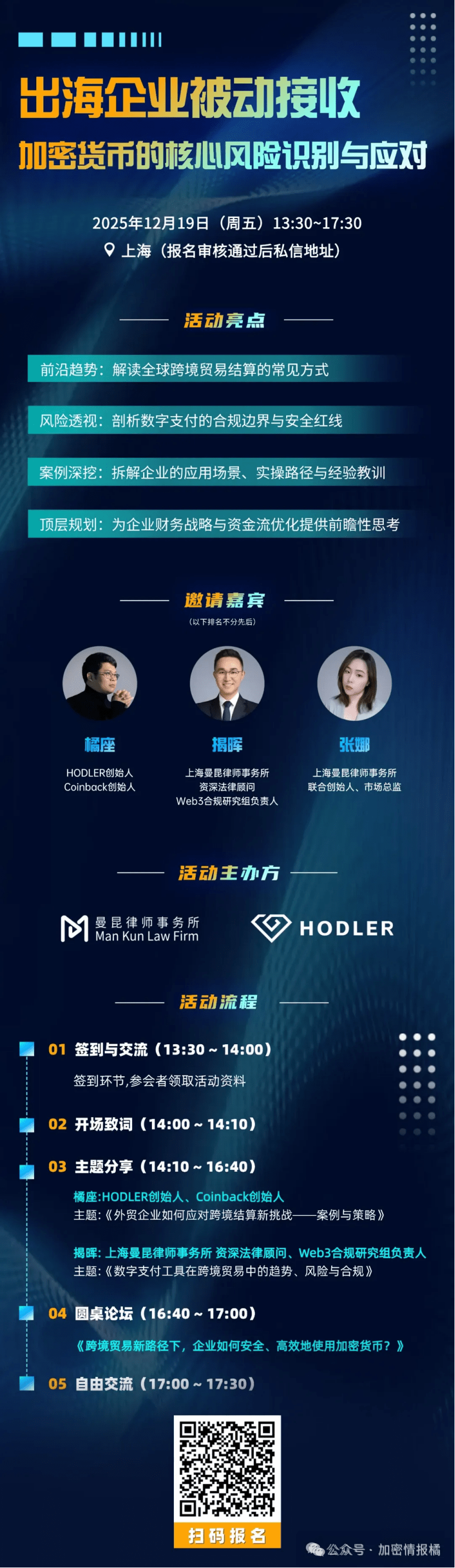 This event is specifically designed to address the issues faced by companies going abroad in this regard. To enhance the on-site experience, the closed-door meeting has only 30 seats. The speaker will discuss the landscape of stablecoins in global cross-border payments, answer the questions encountered by companies going abroad in this area, and how to use stablecoins for cross-border trade safely and compliantly.