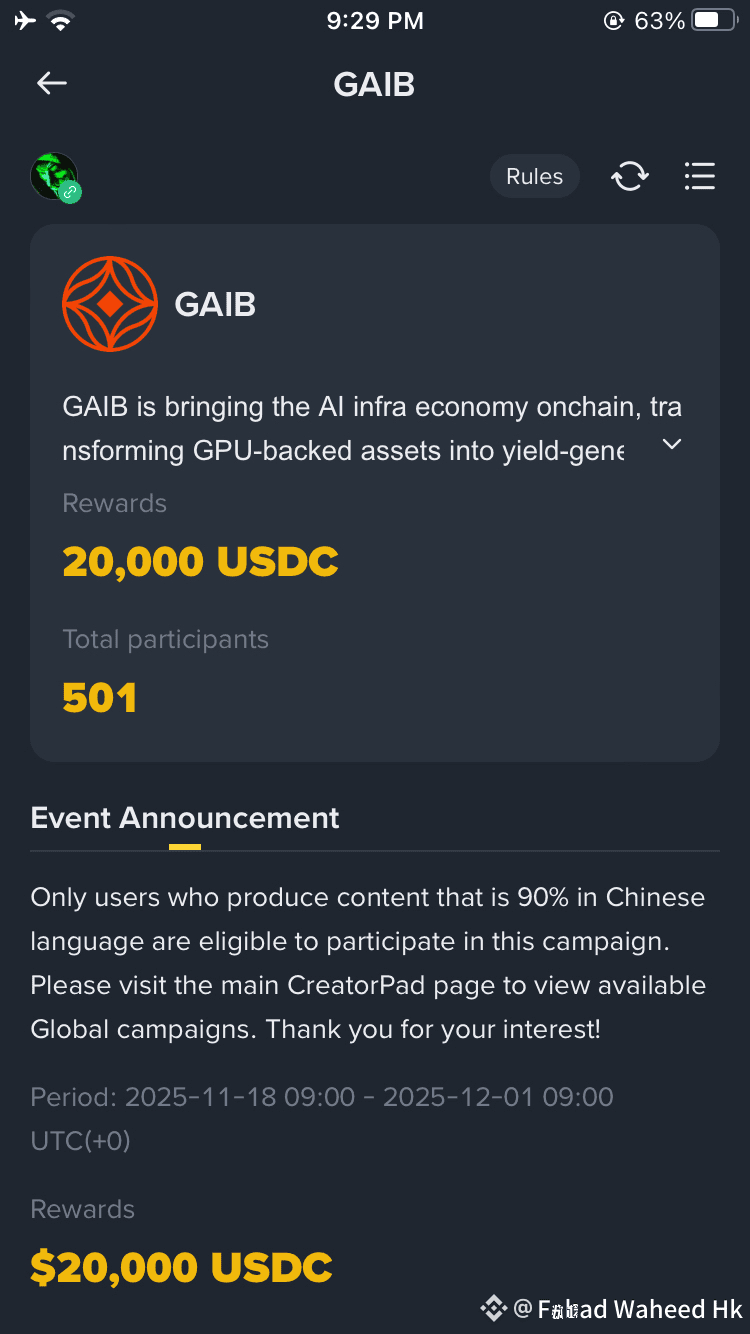 #GAIB #NewsAboutCrypto #campaign # #china #creator Only users who produce content that is 90% in Chinese language are eligible to participate in this campaign. Please visit the main CreatorPad page to view available Global campaigns.$GAIB