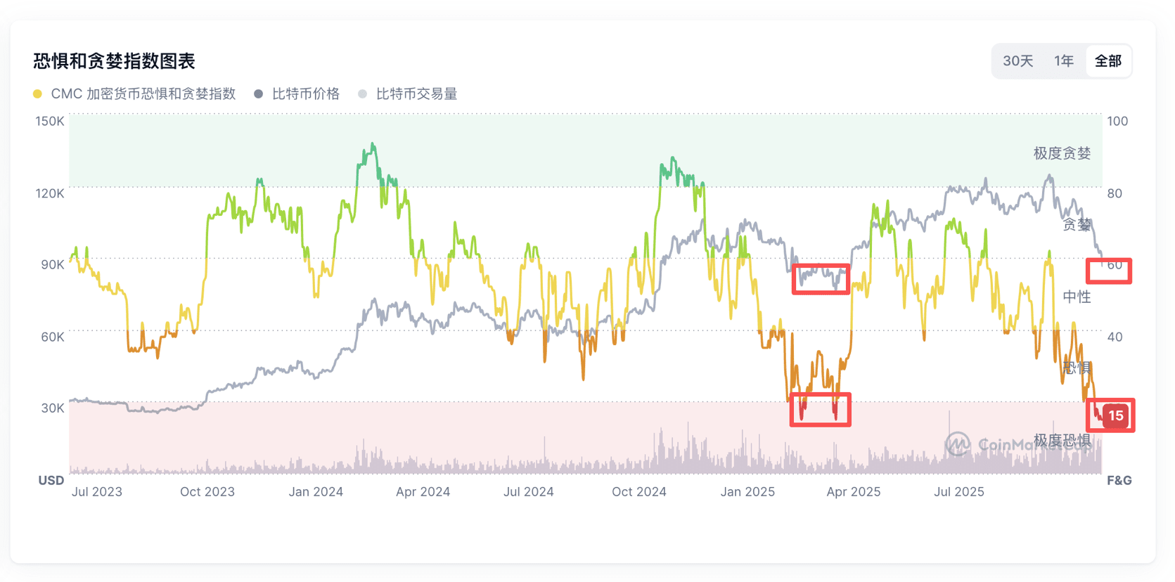 From July 2023 to now, ##恐慌指数 there have only been 3 times below 20, the first two times dropped to the bottom, is it not far from the bottom now?$BTC $BNB