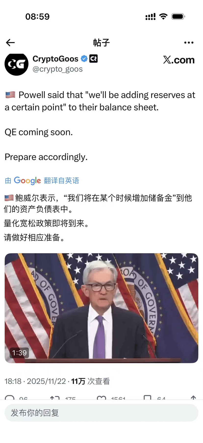 #加密市场观察 Last night, Powell made a rare statement: 'At some point, we will increase reserves on the balance sheet.'