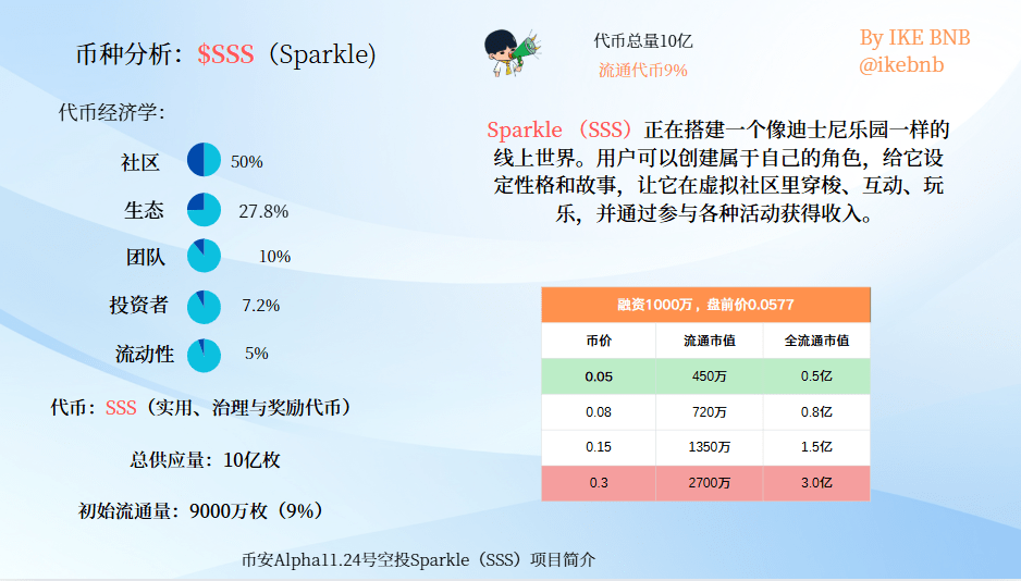 Established in Singapore in 2024, positioned as the 'first AI Disneyland', currently raised a total of 10 million USD, expected to launch tonight at 18:00, initial circulation 9%, estimated price range of 0.05-0.15 USD.