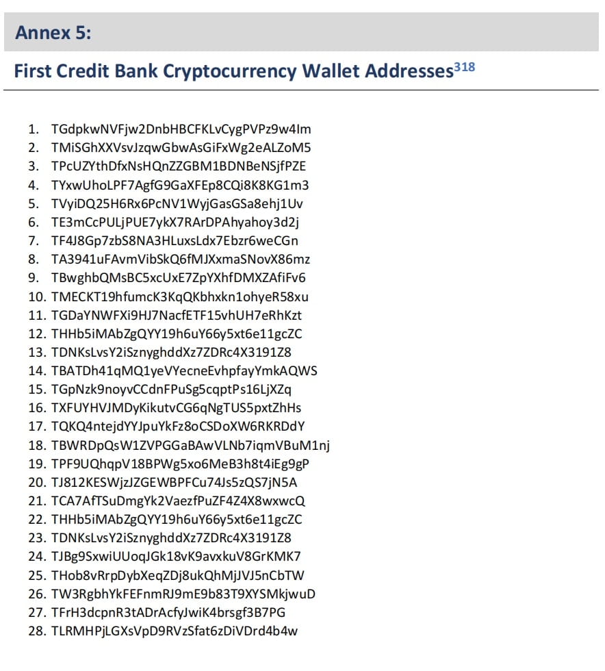 According to information provided by MSMT member states, The DPRK’s First Credit Bank (FCB) has utilized an American financial services company to exchange US dollars for Chinese yuan and holds reserves in dozens of cryptocurrency wallets; some DPRK cybercriminals have also opened accounts in foreign financial institutions for money laundering activities.
