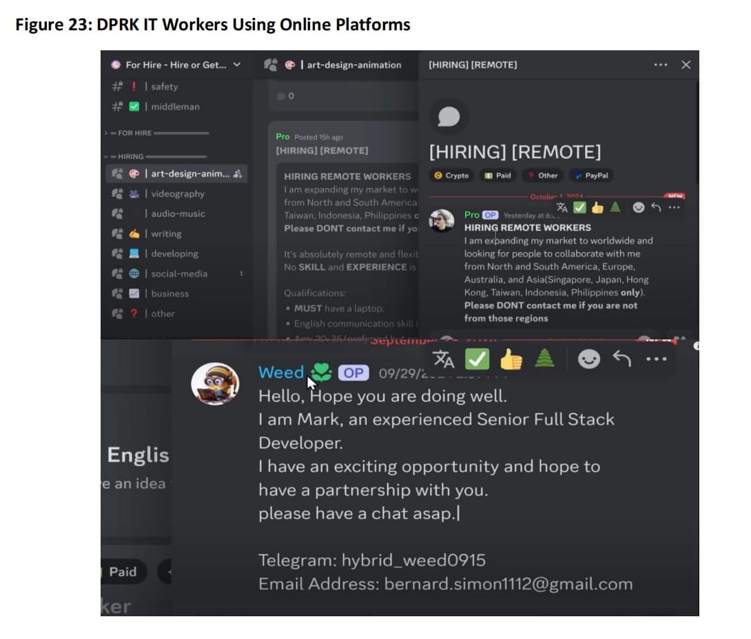 IT workers typically acquire overseas positions through freelance platforms (such as Upwork, Freelancer, Fiverr), social media, and professional networks (such as LinkedIn, Discord). They often use multiple identities and forged documents to evade background checks and receive payments via cryptocurrency, Wise, and Payoneer.