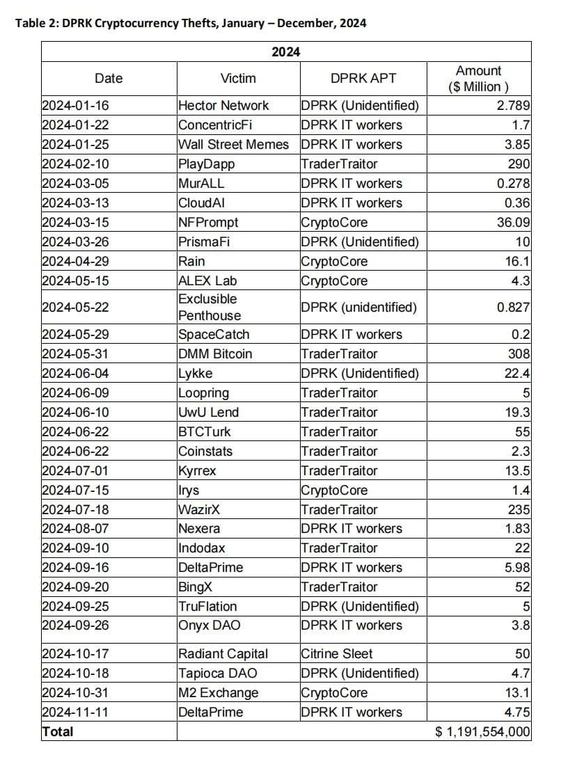 Major cases include the February 2025 TraderTraitor breach of the Dubai-based cryptocurrency exchange Bybit, stealing nearly $1.5 billion, marking the largest cryptocurrency theft in history. Additionally, exchanges like Japan’s DMM Bitcoin and India’s WazirX were significantly impacted, with some exchanges ceasing operations as a result. According to estimates from MSMT participating countries, the proceeds from cryptocurrency theft in 2024 accounted for about one-third of DPRK's total foreign exchange income, with the following cryptocurrency theft cases attributed to DPRK: