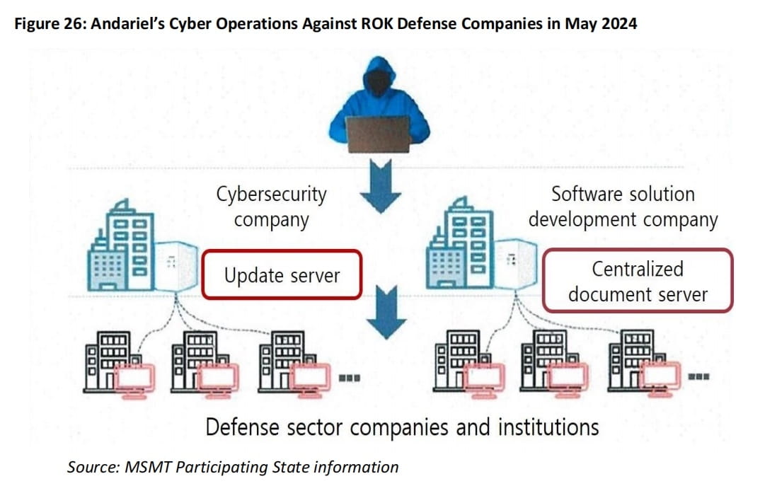 In May 2024, Andariel exploited a supply chain vulnerability in DLP software developed by a security company to launch attacks against multiple South Korean defense technology firms. The attackers controlled its central update server, distributing malware disguised as legitimate modules to downstream customers, and stole a large amount of sensitive data, including weapon design blueprints, from multiple enterprises.
