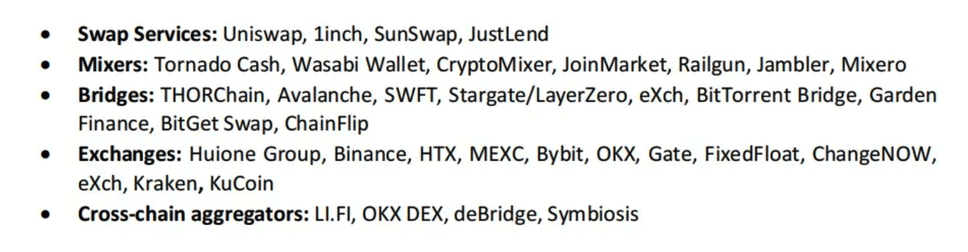 Despite criminals and money launderers constantly changing their laundering strategies and attempting to abuse various legitimate services, during the reported period, they consistently relied on certain specific platforms, and the following list is not exhaustive but compiled from various information sources: