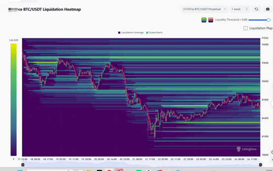 From the liquidation heatmap of the past week, long liquidity is concentrated at 83K, while short liquidity is concentrated at 94K.