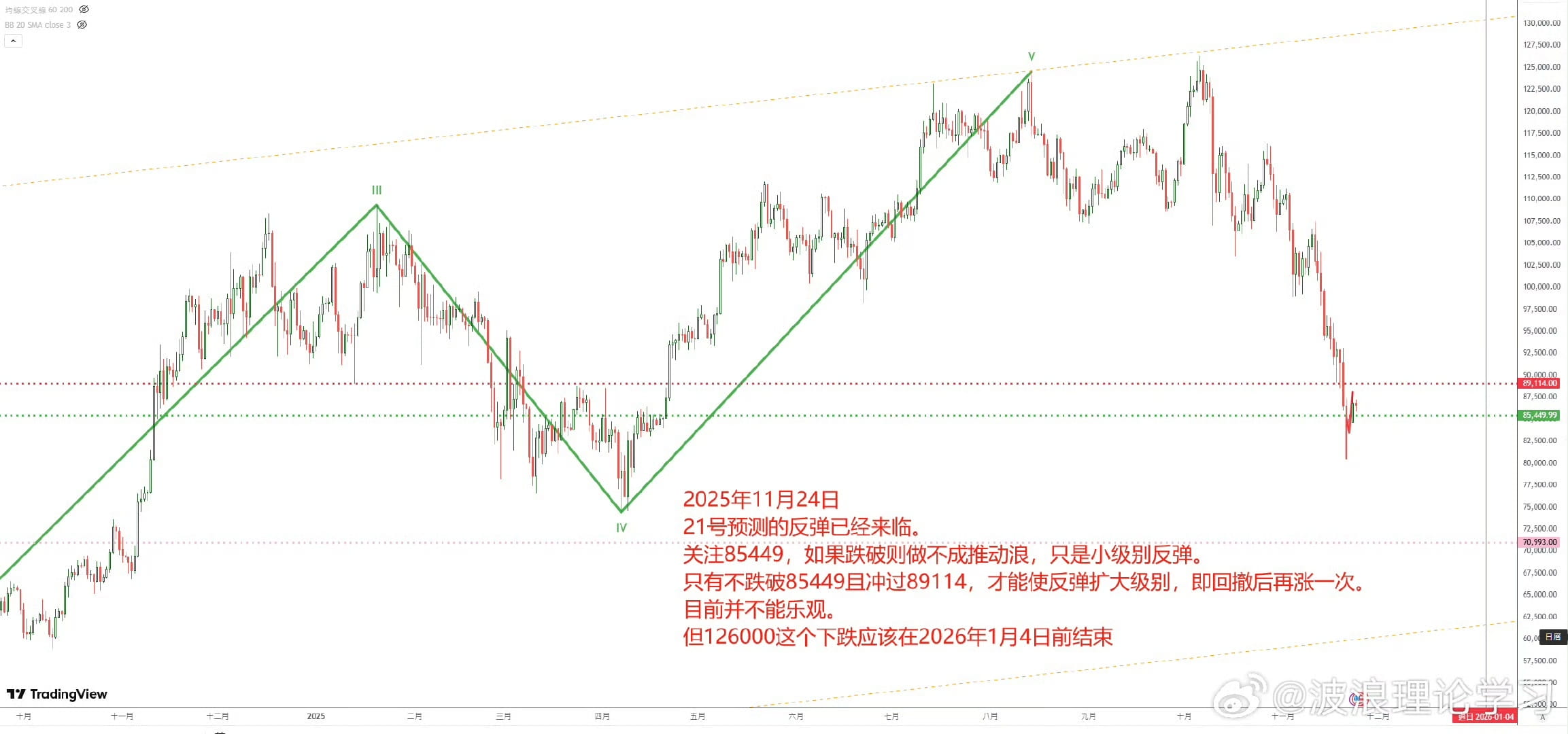 Today, Liu Yudong proposed that the decline starting from 126K will end before January 4, which aligns with Joshua's view; Joshua analyzes that liquidity will truly return in early January from a macro liquidity perspective, while Liu Yudong arrives at this conclusion from the perspective of wave theory.