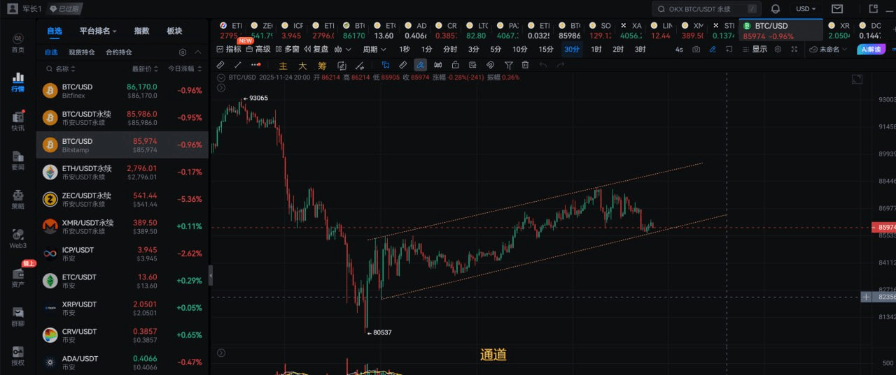 Since we have opened some swing long positions, Zone A is where we average our positions: 81–83.3k. Zone B is the exit point for all long positions (including spot). B may peak at 97k, but a 3T pullback is the signal for exiting long positions.