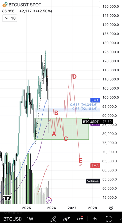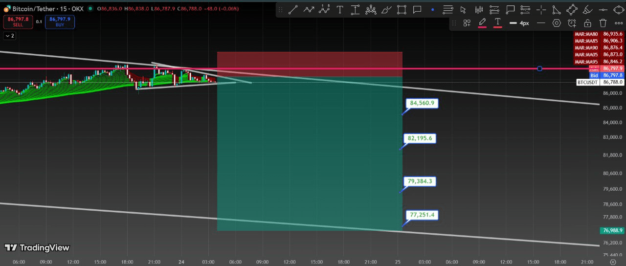 (Vivian believes that after the U.S. stock market opens tonight, BTC will rebound to around 88K but will decline again for a second bottom.)