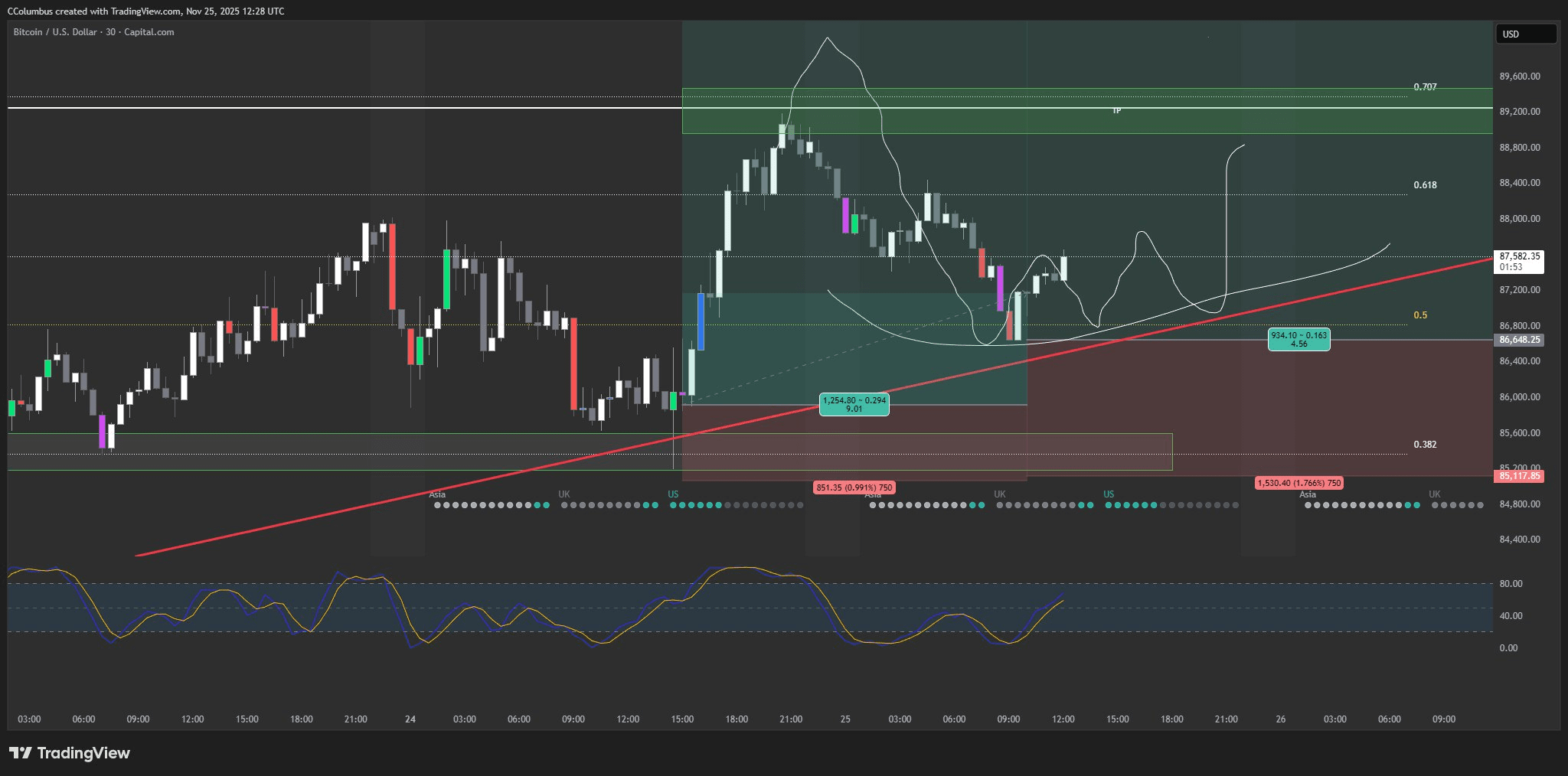 If you entered at 86,650, it seems almost god-like precise at the moment. But be careful, there may be tight stop-loss volatility later today…