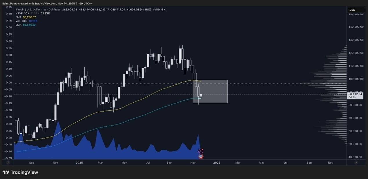BTC has stabilized at the weekly EMA 100 support level of $85,000, while the Nasdaq rebounded from the support level of 24,000.