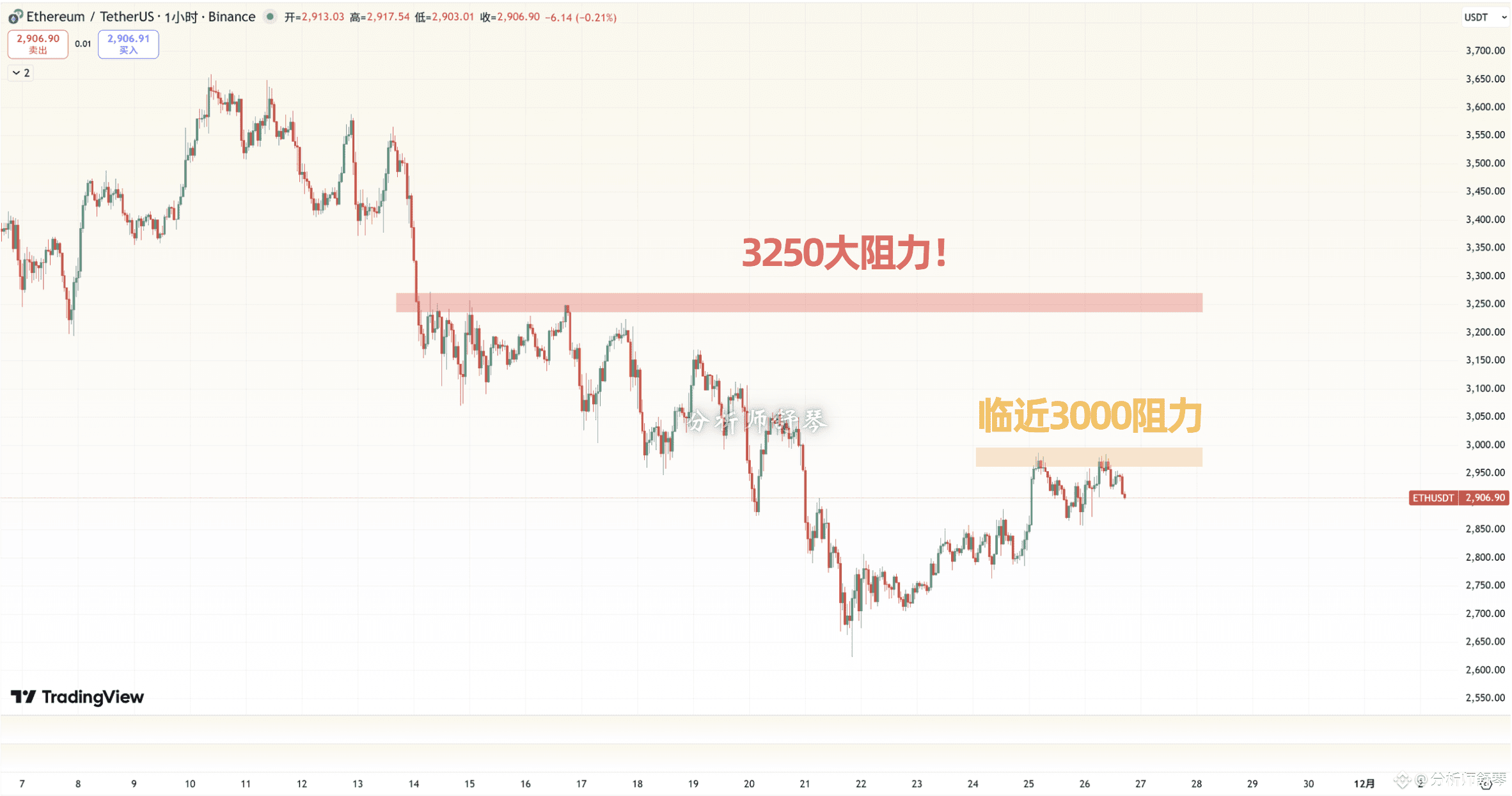 In fact, I believe the ideal short entry point should be around 3250, and it would be very wise to decisively intervene at this point. I have continuously placed sell orders at this price level, and once the opportunity arises, I will not hesitate to act and ensure that all short positions are completed before the Federal Reserve meeting on December 10. Thereafter, due to a lack of further positive support, the price of ETH may fall to 2000 or even lower levels. #ETH