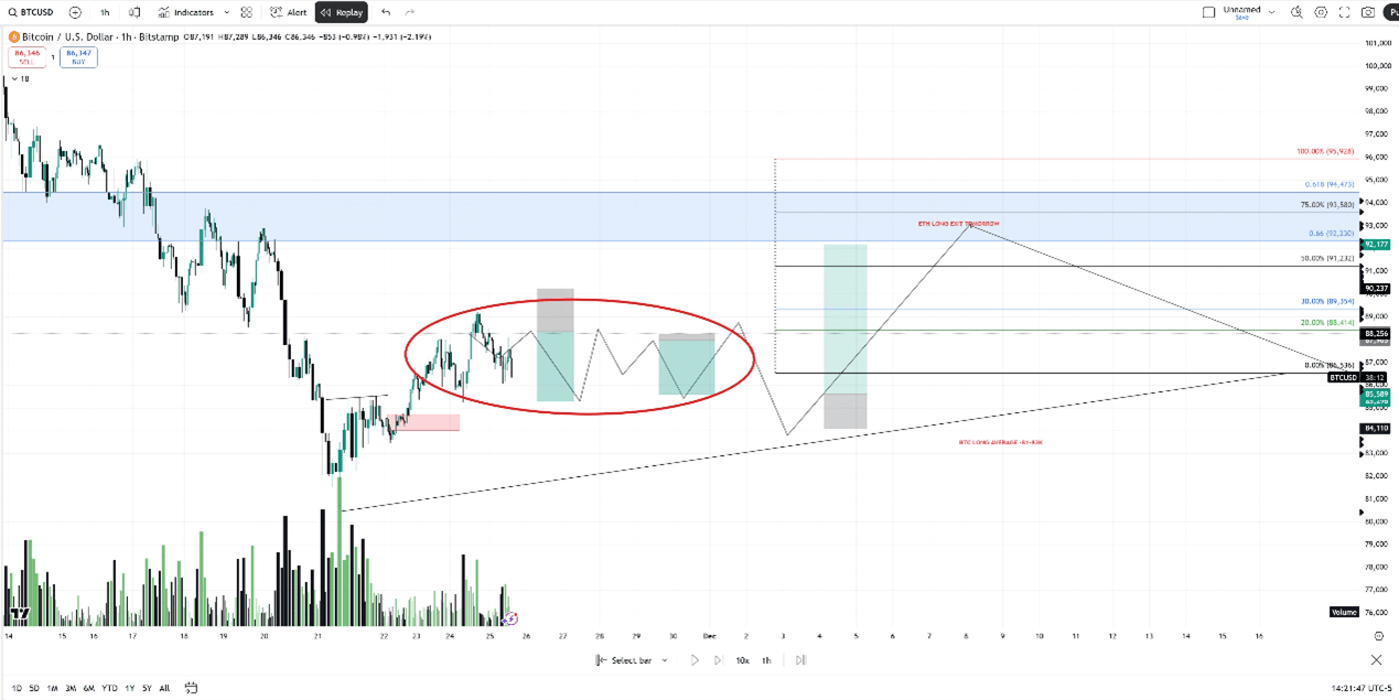 The ideal bullish exit point is at 88–89. Prices may fluctuate and rise between 88–92k until the end of the month, depending on the daily closing situation.