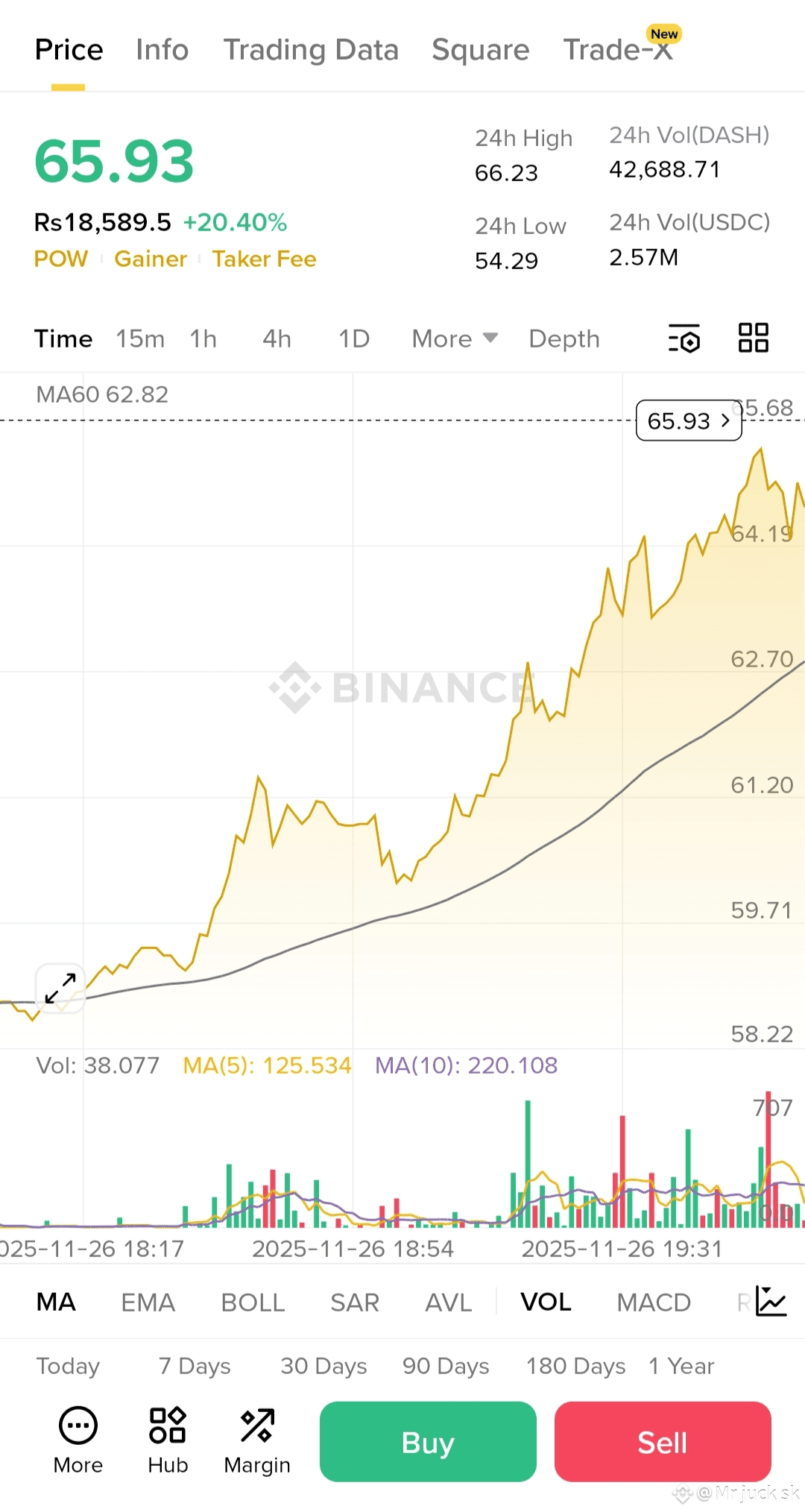 $DASH has bounced sharply from the support at 57.76, showing strong buying momentum after the deep pullback. The fast green move indicates that buyers are stepping back in. If the price stays above 59.80, we could see a push toward the next resistance levels.