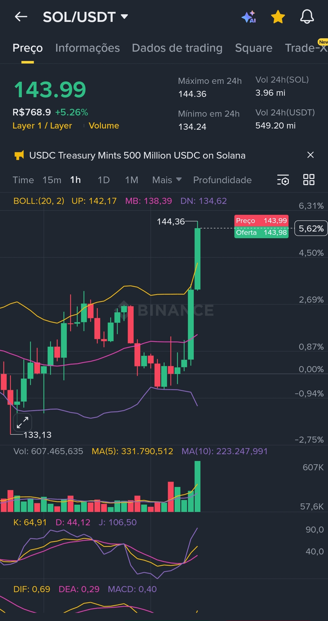 The resilience of $ solana and its strength in the market demonstrates that Sol is here to stay and is entering the ranks of the greats. Remaining in the top tier of crypto, alongside #ETH #BTC #BNB #LTC among others. During the liquidity outflow from the market, # sol held at around USD 130.00 and today it is exploding, breaking through an old and tough resistance of USD 140.00. We can believe that if the market remains stable, # solana should return to its peak. Do your research and do not risk what you cannot afford to lose, the crypto market is volatile and requires time and patience.