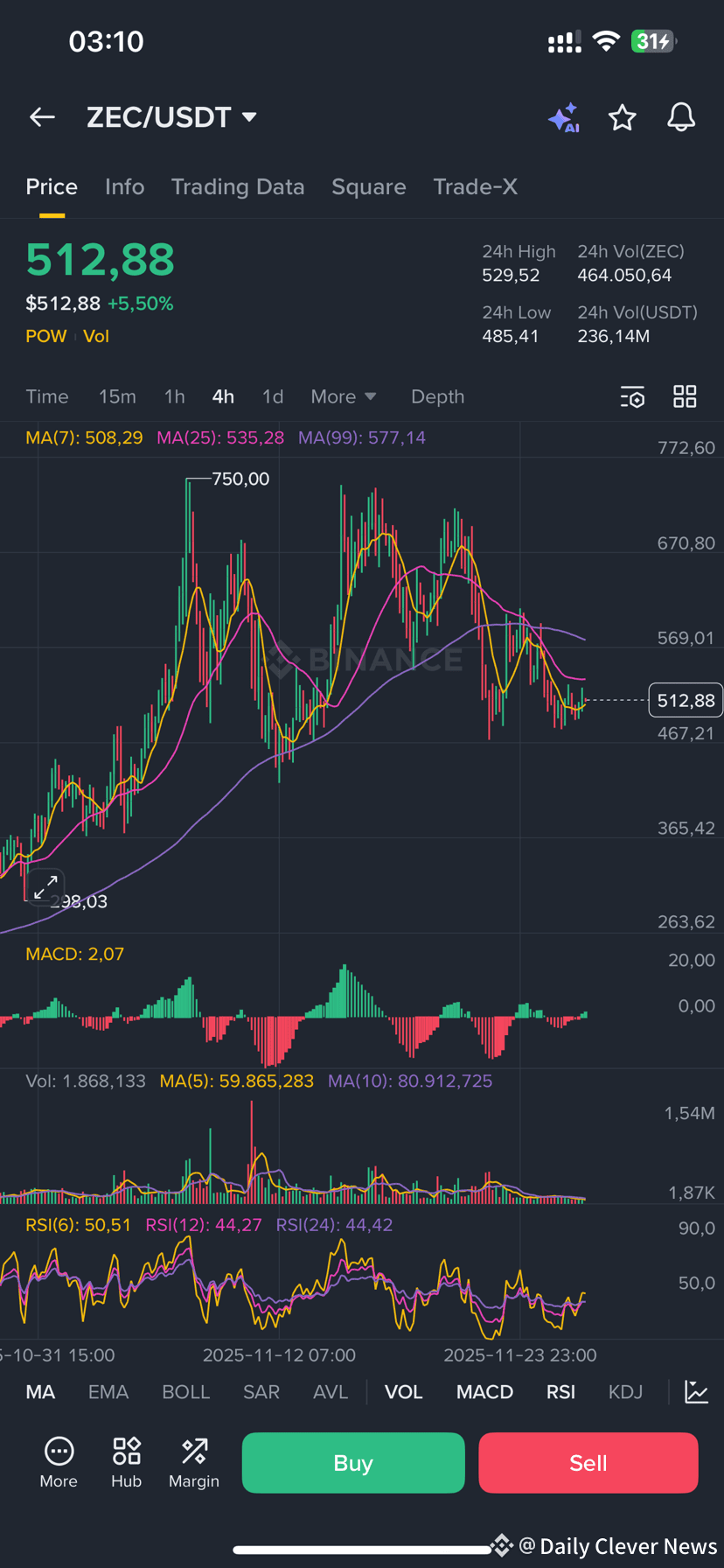 ZEC is entering a consolidation–recovery phase around the 513 USDT zone. The ETF narrative, zk-SNARKs technology advantage, institutional positioning, and supportive macro conditions all point toward a positive medium- to long-term outlook. With global markets leaning toward rate cuts and capital flowing back into risk assets, the current price range offers an attractive accumulation zone aligned with the ETF cycle.