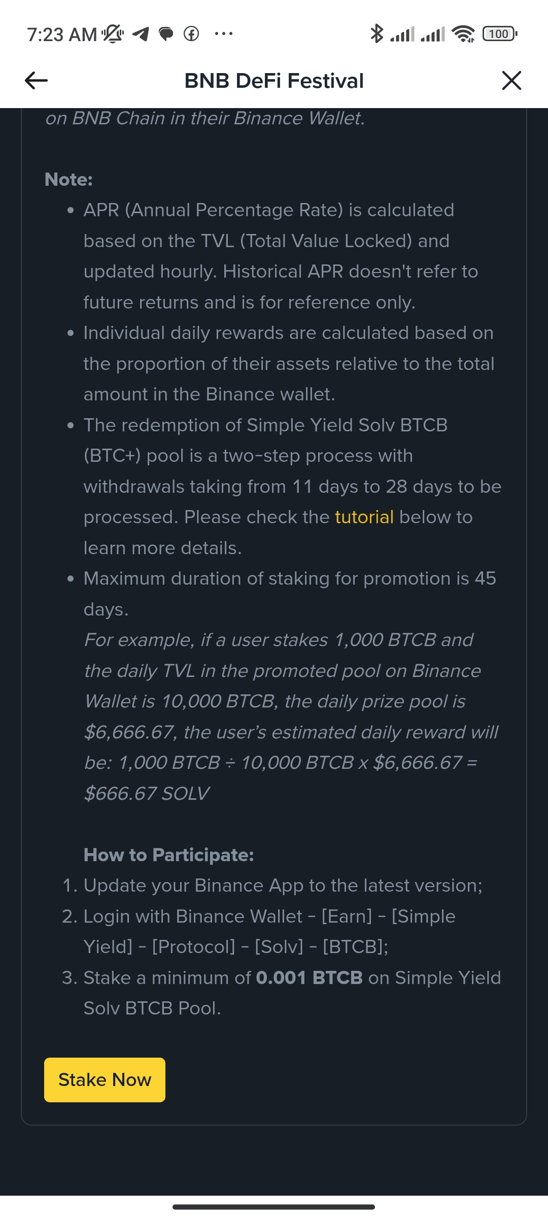 The more BTCB you stake and the total TVL (Total Value Locked) in the pool, the proportionate SOLV rewards you will receive.