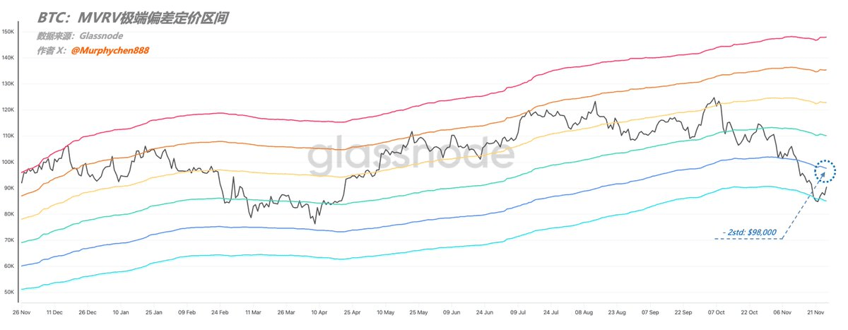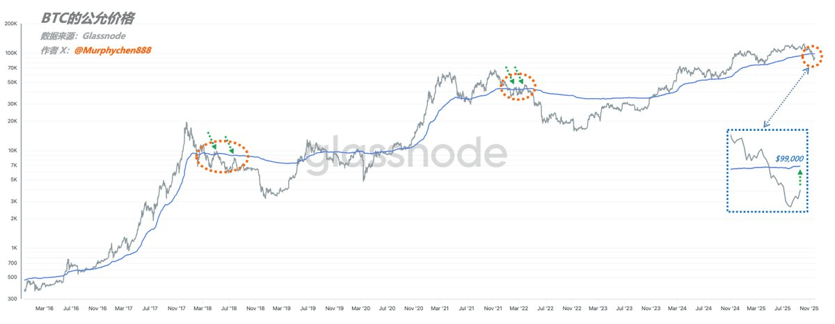 At the same time, $98,000 is also the historical fair price line for BTC (currently $99,000), which is the average premium of BTC relative to the average buying price throughout its history. The more the price exceeds the fair price, the larger the bubble of BTC, and vice versa indicates that it is in an undervalued range.