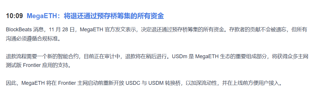 The MegaETH refund seems negative, but it actually hides a secret. They emphasize that the USDm ecosystem will receive significant application support, and reopening the conversion bridge is intended to attract liquidity. This is equivalent to paving the way for ETH—more users and funds entering the market will stabilize the price base.