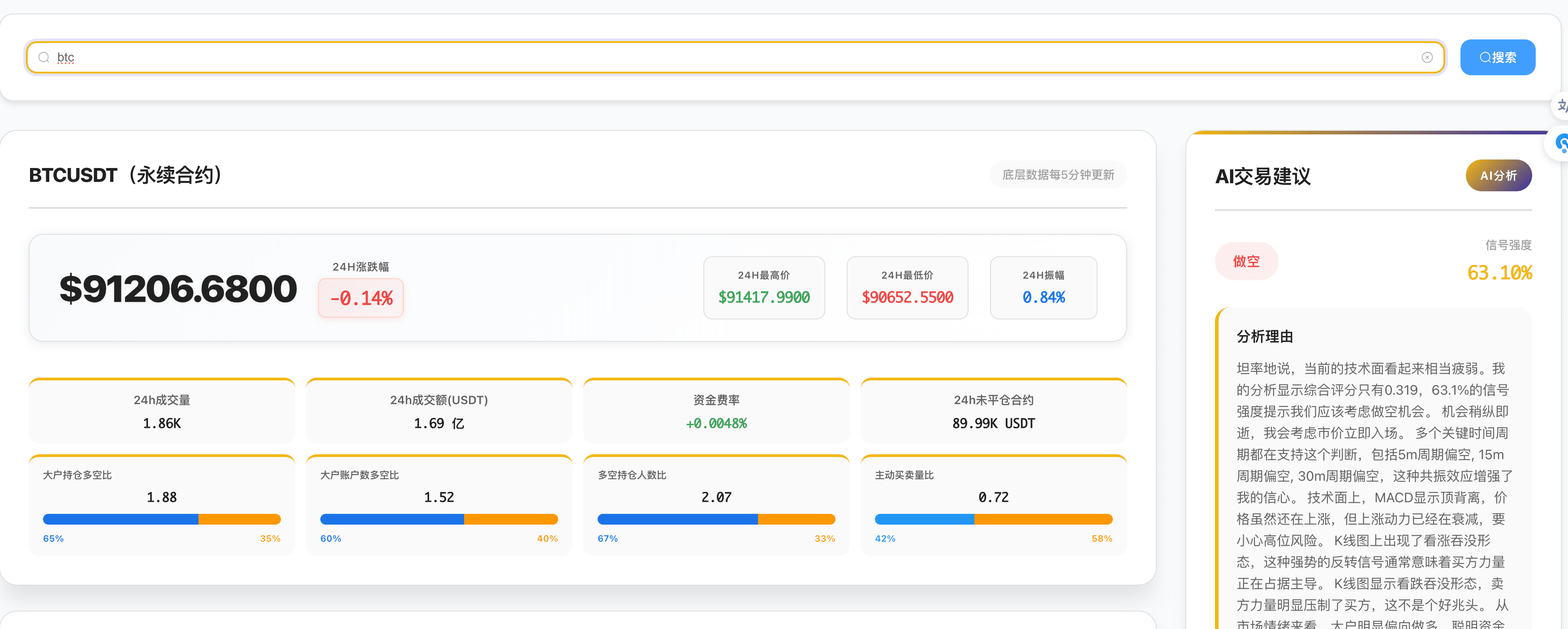 BTC is currently quoted at $91,206, seemingly stable at a high level, but our HangSing quantitative system has detected some concerning on-chain and market signals.