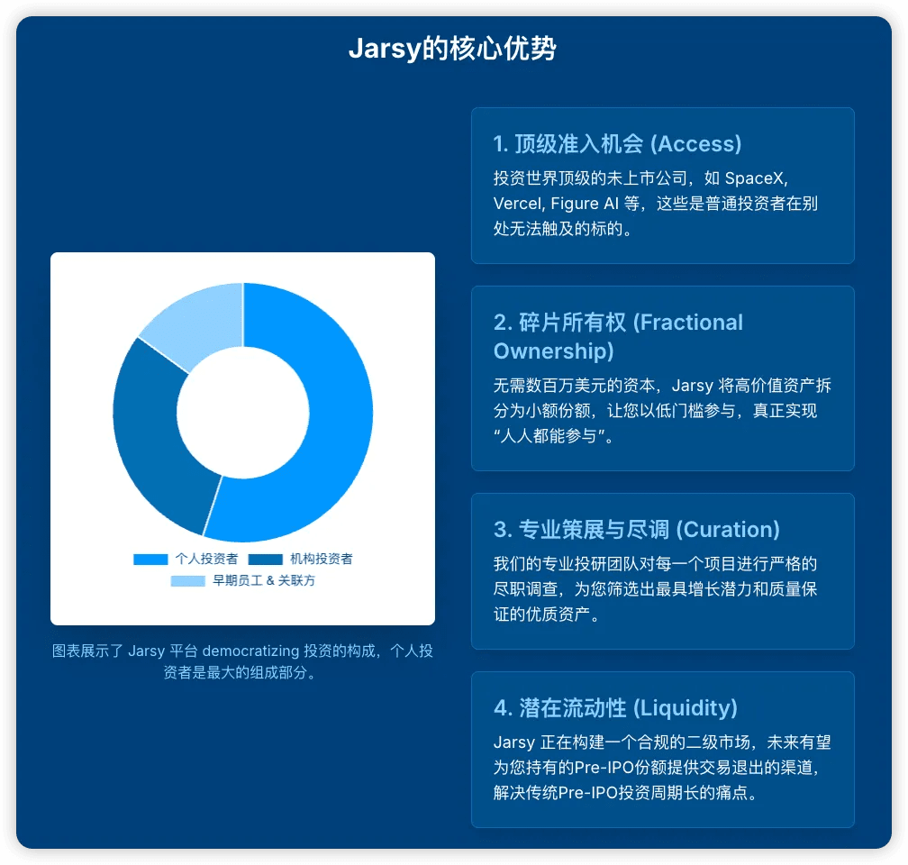 The emergence of Jarsy is essentially an attempt to achieve financial equality. It successfully brings the 'private equity game' that was once only for high-net-worth individuals and institutions into the view of ordinary investors.