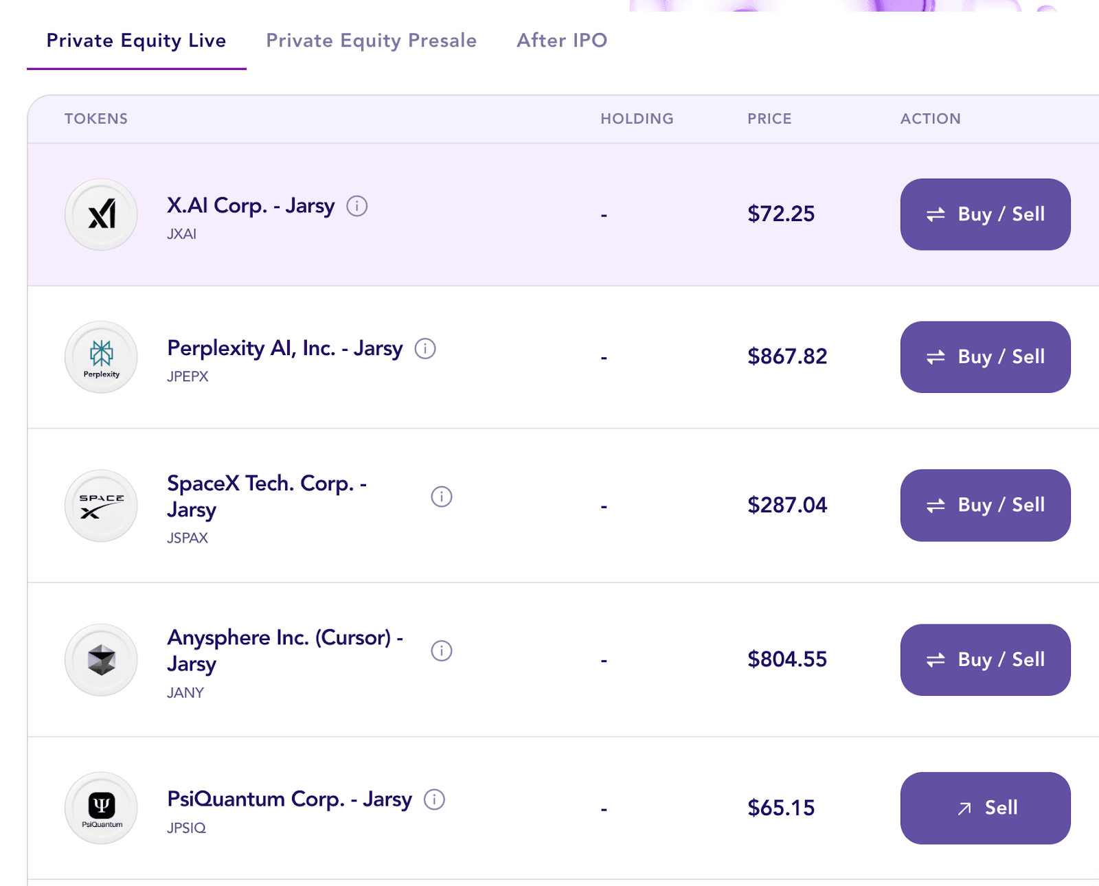 5. You can purchase shares of well-known unicorn companies like xAI, SpaceX, Kraken on the homepage.