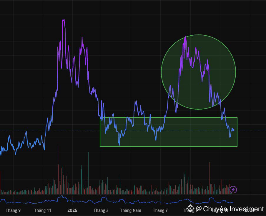 Lượng LINK được tích lũy bởi MM có máu mặt như Flow Trader, Cumberland từ đầu năm 2025 và đẩy mạnh từ tháng 8/2025, ngay vùng sideway trong khung lớn.