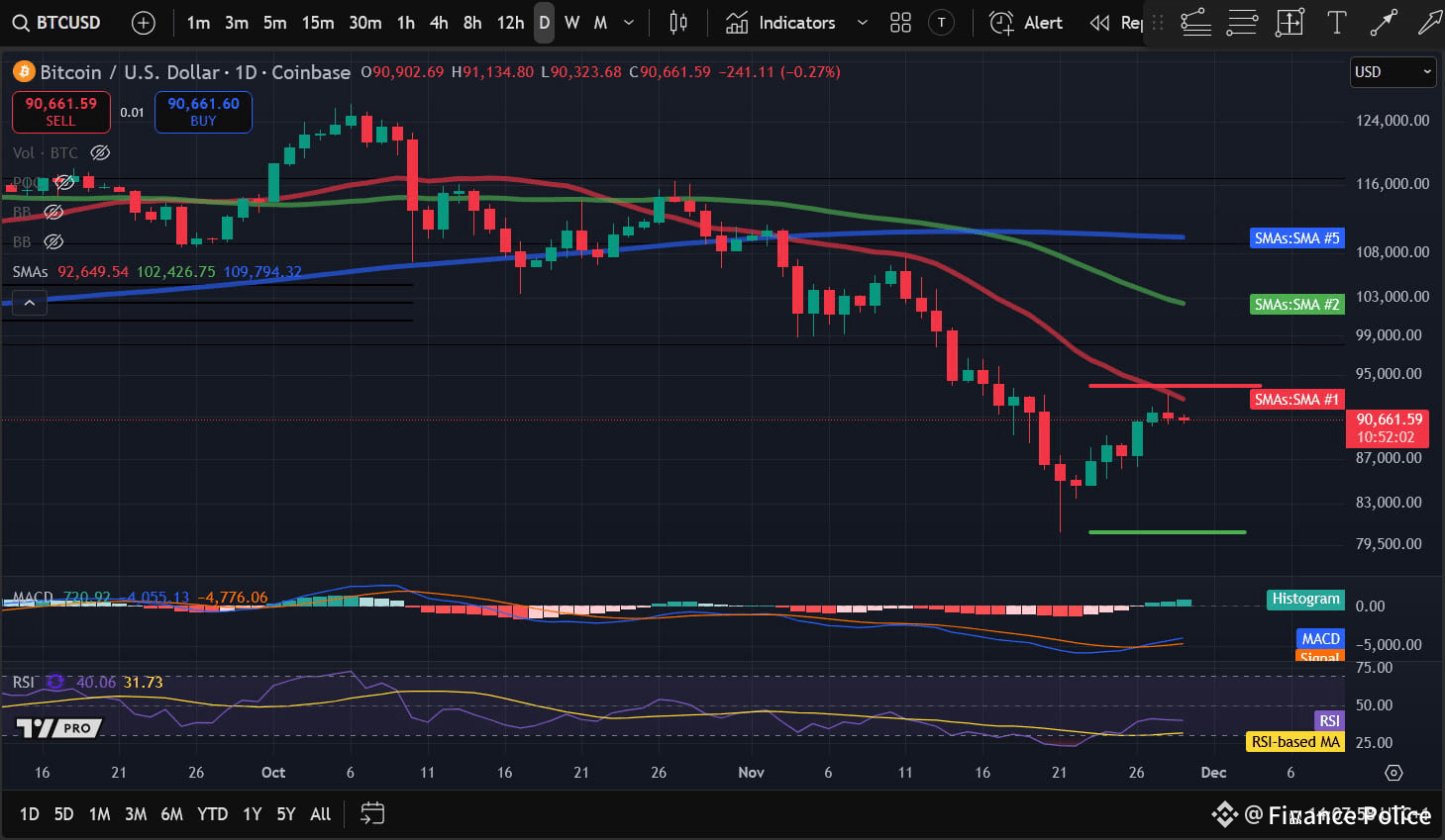 Bitcoin (BTC) registered a marginal decline on Friday despite reaching an intraday high of $93,161, ultimately settling at $90,9902. The flagship cryptocurrency is down 0.29% during the ongoing session, trading around $90,648.