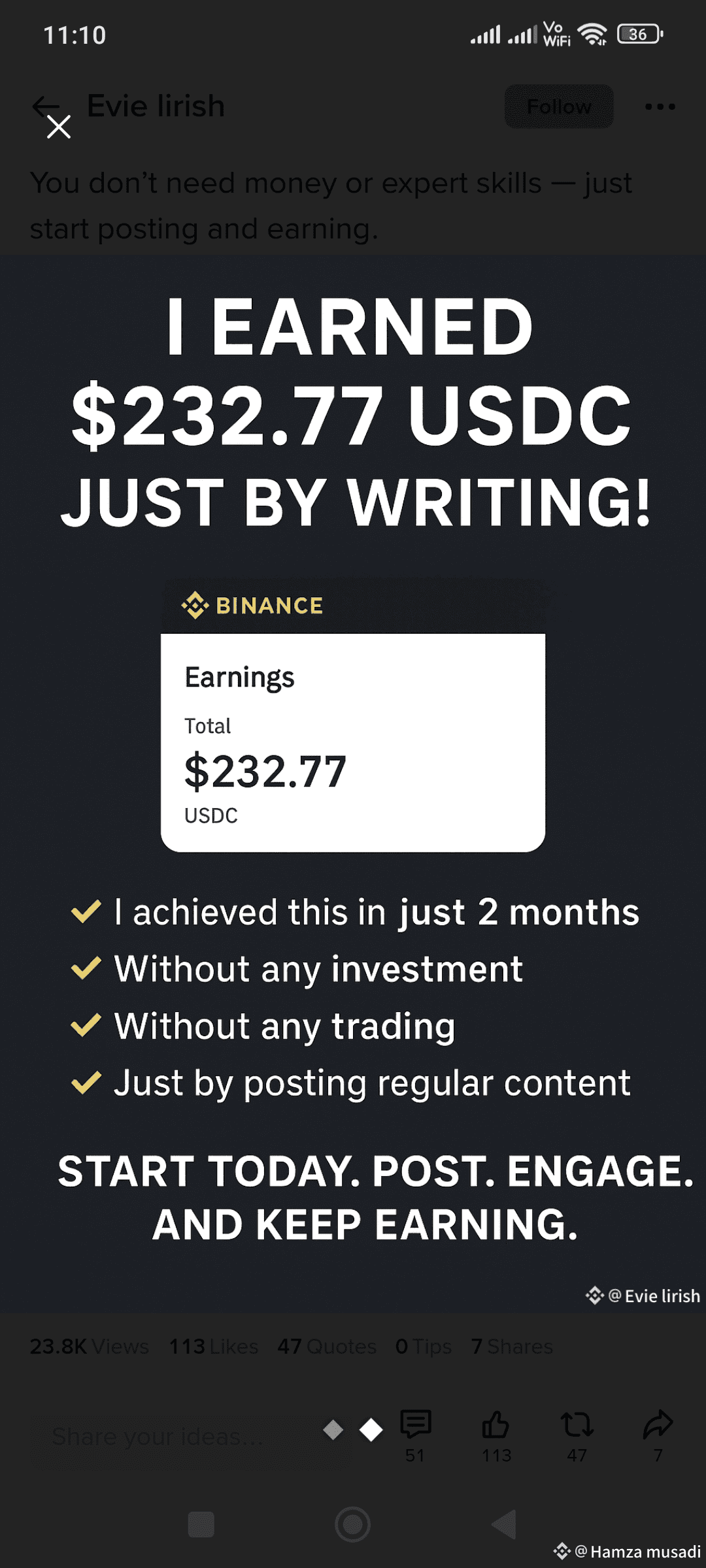 Yes, it’s real. I made $232.77 USDC from Binance’s Write to Earn in just 2 months:
