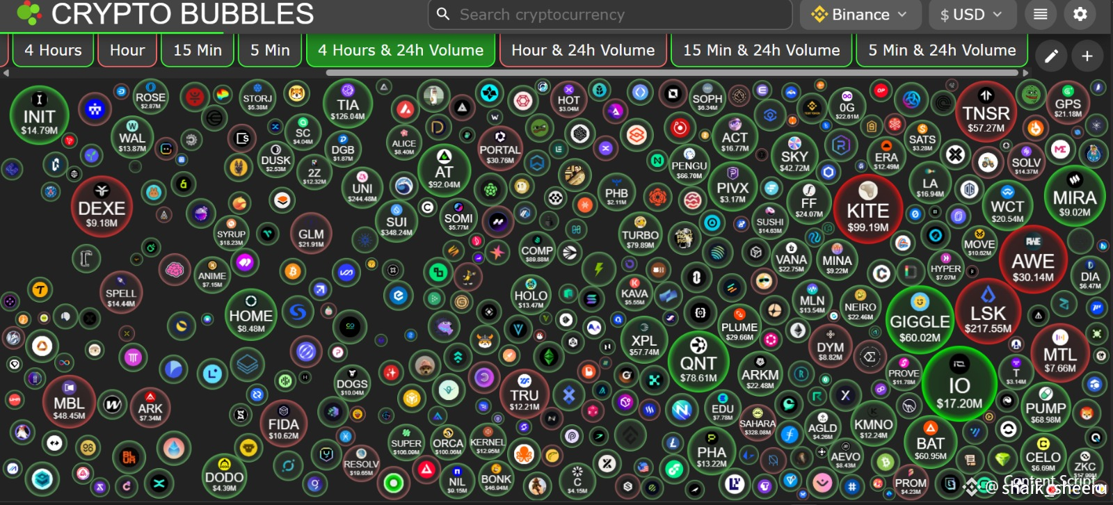 * LSK ($217M+) – One of the biggest green bubbles, showing strong performance.