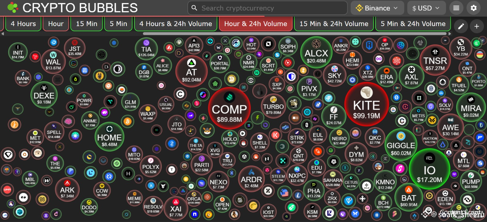 * IO ($17M+) – Also a big green bubble, rising in value.