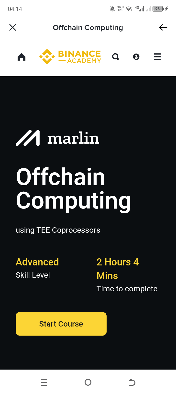 Today I participated in an important experience that I wanted to share with you. I started studying the course #OffchainComputing using #TEECoprocessors provided by #marlin on #BinanceAcademy , which is considered one of the most difficult and important courses currently available due to the advanced level of content.