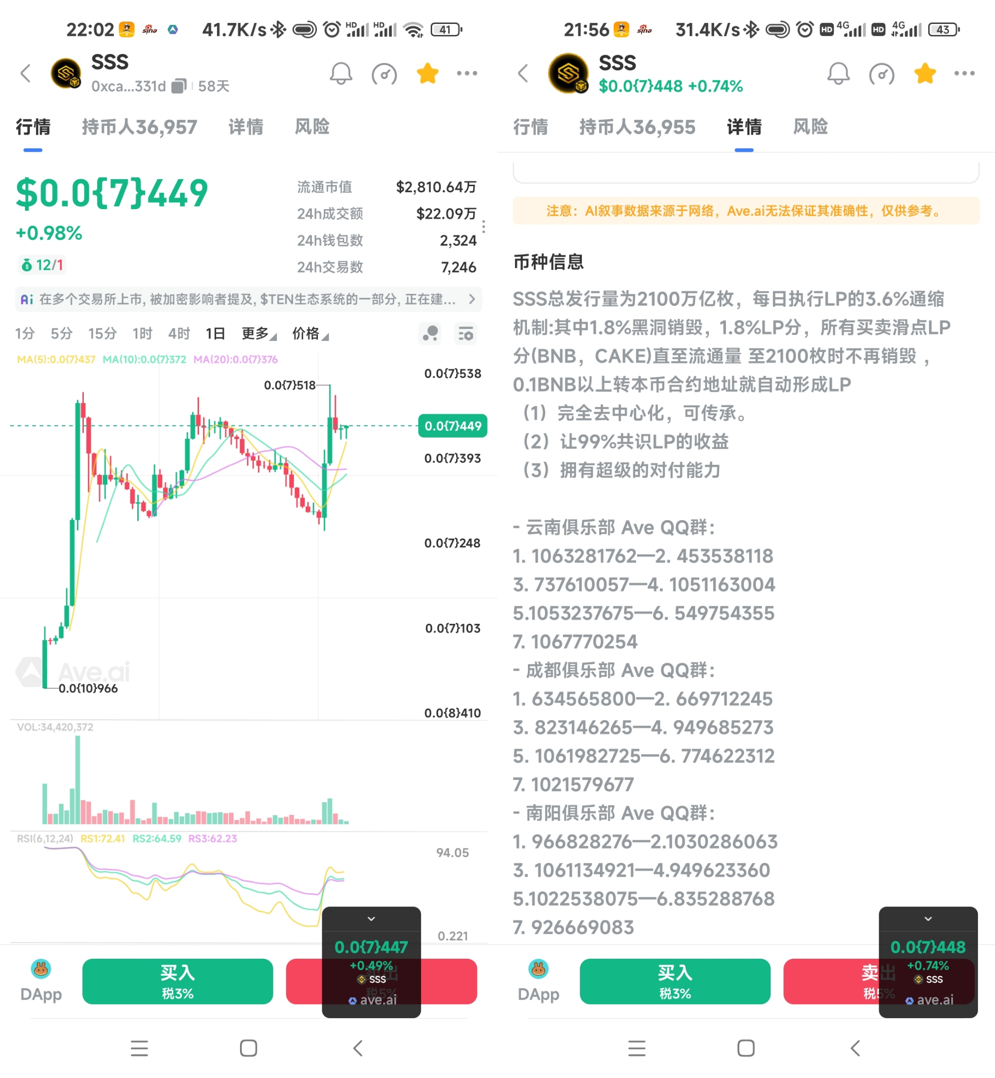 · Continuous incentives, shared dividends: designed an infinite mining profit-sharing mechanism, where earnings come not only from the token itself (SSS) but also anchor mainstream asset values like BNB and CAKE, providing participants with continuous and diverse income streams, encouraging long-term holding and building.